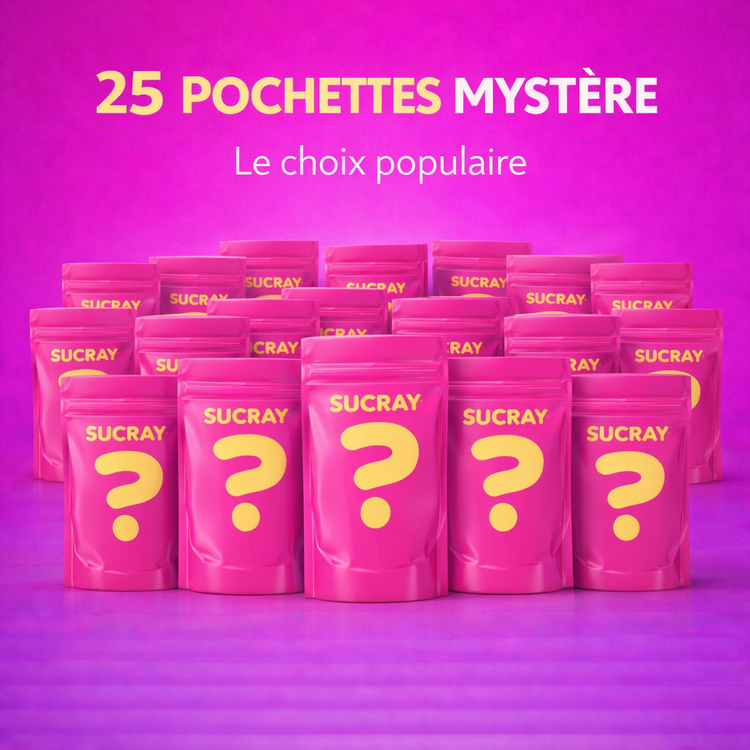 Ajoutez une dose de magie sucrée à votre journée avec les Pochettes Mystère Sucray! Chaque pochette contient 50 g de bonbons variés, soigneusement sélectionnés parmi plus de 100 sortes irrésistibles. C’est une explosion de saveurs à chaque ouverture! Ce qui rend l’expérience encore plus spéciale? Chaque pochette est ouverte en direct lors de nos Lives – vous voyez instantanément le délicieux mélange que vous recevez. C’est le plaisir de la surprise… version Sucray.