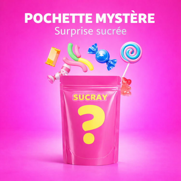 Ajoutez une dose de magie sucrée à votre journée avec les Pochettes Mystère Sucray! Chaque pochette contient 50 g de bonbons variés, soigneusement sélectionnés parmi plus de 100 sortes irrésistibles. C’est une explosion de saveurs à chaque ouverture! Ce qui rend l’expérience encore plus spéciale? Chaque pochette est ouverte en direct lors de nos Lives – vous voyez instantanément le délicieux mélange que vous recevez. C’est le plaisir de la surprise… version Sucray.